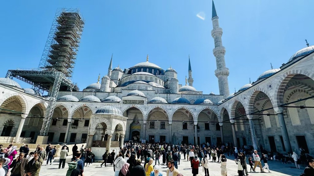 Started my first full day in Turkey by sleeping in way too late, then had a lovely little breakfast at the hotel. Feeling optimistic, we headed off to Hagia Sophia—like responsible adults, we paid extra to skip the ticket-buying line by getting them online. Joke’s on us though, because we still had to stand in the long entrance line with everyone else.