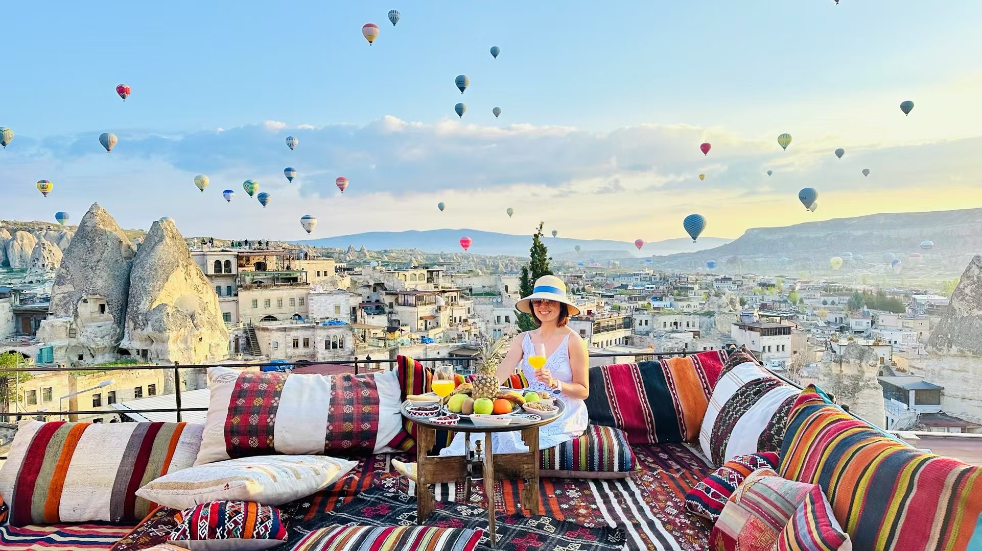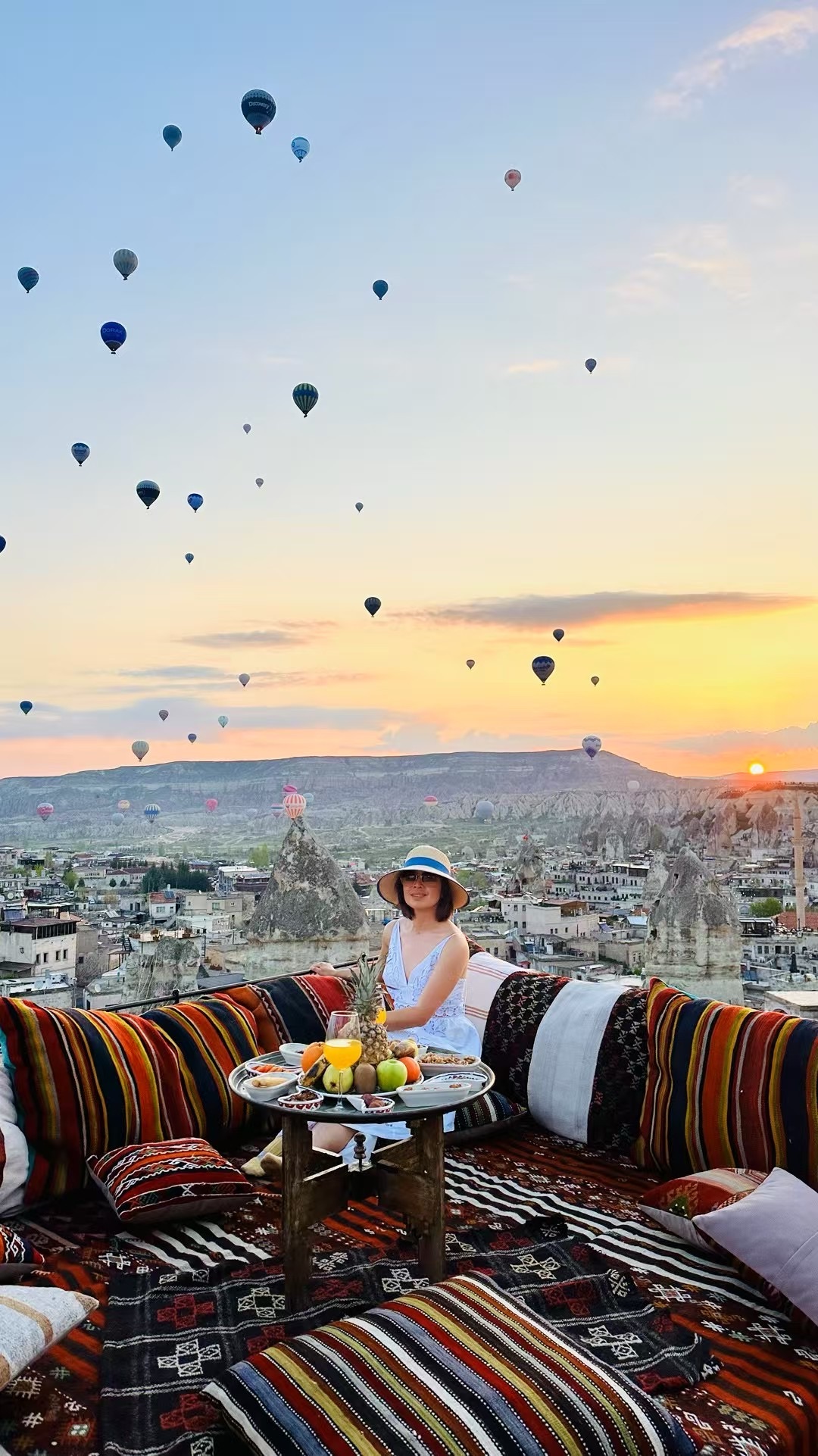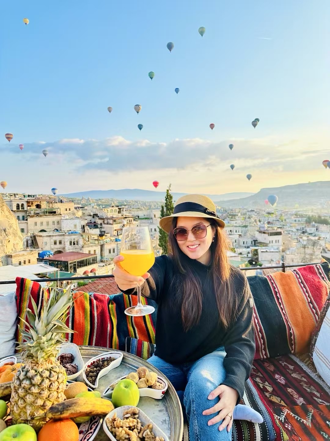 We waited until 8 for the weather to clear and finally got the green light for takeoff. The flight itself was absolutely stunning, no question. The stuffs are professional, especially friendly after hearing we are Chinese. But to be honest, it felt significantly overpriced. Still, I can now say I floated above the valleys of Turkey while half-sick, completely voiceless, and somehow still am camera ready (more or less…)