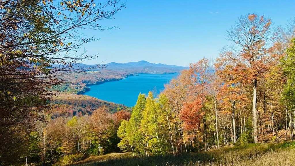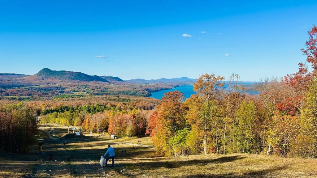 Owl’s Head — We went for the fall foliage, so there was no snow and no skiers this time. Since it’s a ski resort in winter, all the trails leading up are actually ski runs. The drive from Montreal was beautiful, with mountain views that kept getting better the closer we got. When we arrived, I was surprised by how many cars were in the parking lot and how lively the base still felt, even in the off-season.